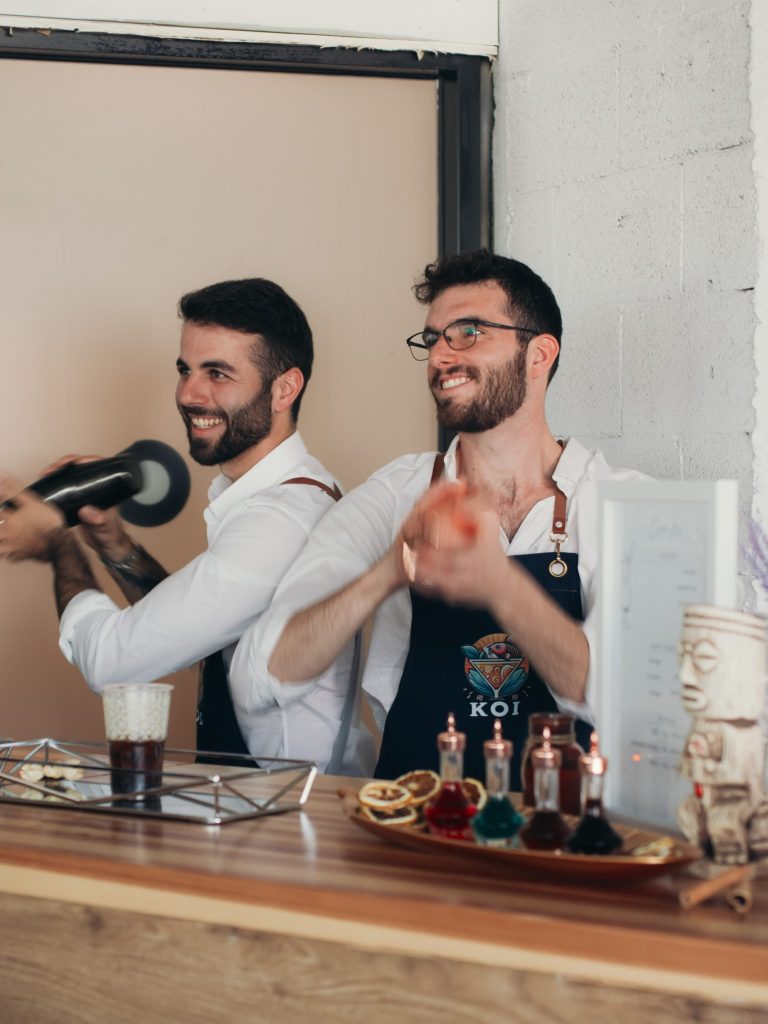 ב-KOI, הברמנים שלנו הם הלב הפועם של האירוע ואלו שיוצרים אווירה בלתי נשכחת. אנחנו לא רק מוזגים קוקטיילים מוקפדים, אלא דואגים לחיבור אמיתי עם האורחים שלכם. תמצאו אצלנו צוות מקצועי שמרים את המורל, רוקד עם הקהל, מנהל שיחות מרתקות על הבר ודואג להרים צ’ייסרים יחד עם האורחים כדי להבטיח זרימה של אנרגיה חיובית. המטרה שלנו היא שכל אורח ירגיש במרכז, עם שירות שניתן מכל הלב ובחיוך רחב, מה שהופך את האירוע העסקי לחגיגה חמה ומגבשת.